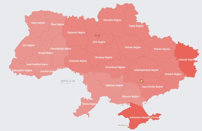 Alertă meteo în toată Ucraina. A fost confirmată lansarea unei rachete de croazieră. A fost înregistrată o rachetă zburând prin regiunea Sumy spre regiunea Poltava. A fost înregistrată o rachetă zburând prin regiunea Harkov către regiunea Dnipropetrovsk.