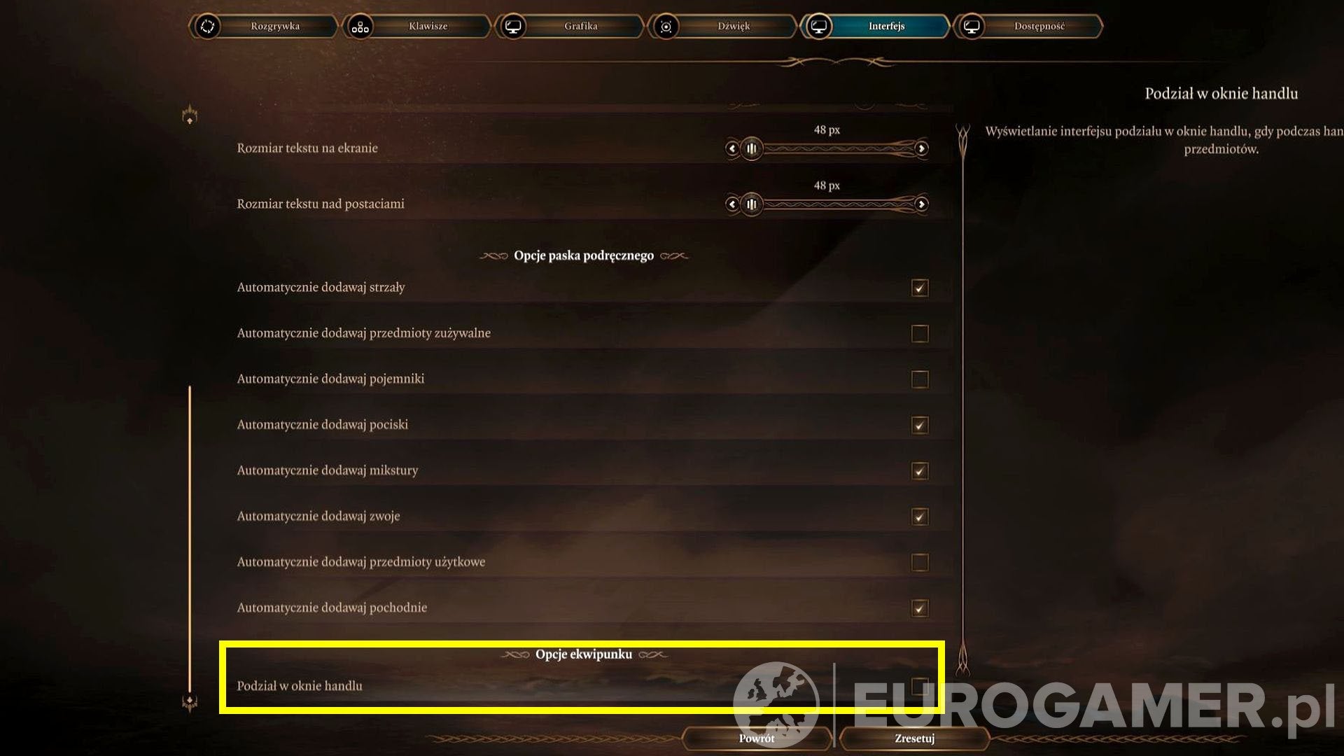O altă opțiune – pentru jucătorii de pe computer – este să folosești comanda rapidă de la tastatură: Alt+Shift+clic stânga. De asemenea, merită să ne amintim żtać, żć. Fiecare personaj are propria grămadă de aur, care este împărțită atunci când se face o achiziție. monedele au o coadă; żalsoż & aogon; car, așa că uneori merită să dai ć pentru tovarășul lui ć când te apropii de & etail; Până la sarcina maximă din spate, care afectează negativ mișcarea vitezei.