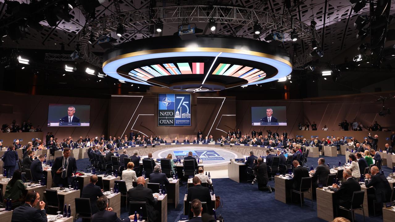 Membrii NATO se vor apăra reciproc pentru că „nu pot ignora posibilitatea unui atac la suveranitatea și integritatea teritorială” a oricărui membru al tratatului. Rusia reprezintă „cea mai mare și cea mai directă amenințare” pentru membrii NATO, iar China o susține și Iranul reprezintă o provocare pentru securitatea euro-atlantică, potrivit textului declarației summit-ului NATO de la Washington. El a subliniat că NATO își va consolida sistemele de apărare antiaeriană și antirachetă. Totodată, el a declarat că flancul estic al NATO va fi întărit constant, iar datorită admiterii Suediei și Finlandei în alianță, Marea Baltică va deveni mai sigură.