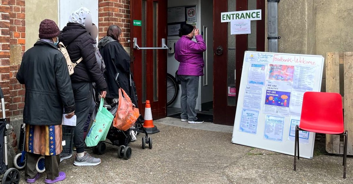 Linia se formează deja cu jumătate de oră înainte ca ușile unei biserici baptiste din estul Londrei să se deschidă. Părintele Tim West urmărește îngrijorat cum cetățenii săi așteaptă cu sacii de cumpărături pentru a începe să distribuie alimente. „Este foarte ocupat astăzi”, spune el.