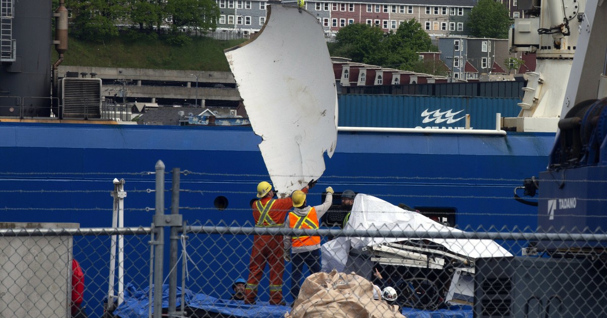 Resturi metalice de la submarinul Titan Marfa sa a fost descărcată de pe nava Horizon Arctic în st. John este în Canada miercuri. Fotografiile prezintă părți metalice ale submarinului acoperite cu prelate.