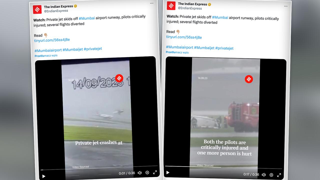 Un avion Learjet cu opt persoane la bord s-a prăbușit în timp ce se apropia pentru a ateriza pe aeroportul din Mumbai în jurul orei 17:00, joi. Deși toți cei aflați la bordul avionului privat au supraviețuit accidentului, surse citate de ziarul Indian Express au confirmat că piloții și pasagerii au fost răniți și au fost transportați la spital. Timp de 90 de minute după accident, avioanele au fost deviate către alte aeroporturi.