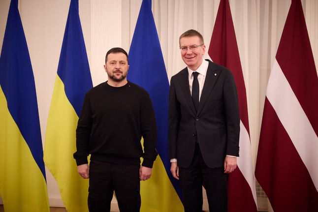 Președintele leton Edgars Rinkević a anunțat pe 11 ianuarie un nou pachet de ajutor militar pentru Ucraina, care include obuziere, drone și muniție. Acest lucru a avut loc în timpul unei conferințe de presă comună cu omologul său ucrainean, Volodymyr Zelensky.