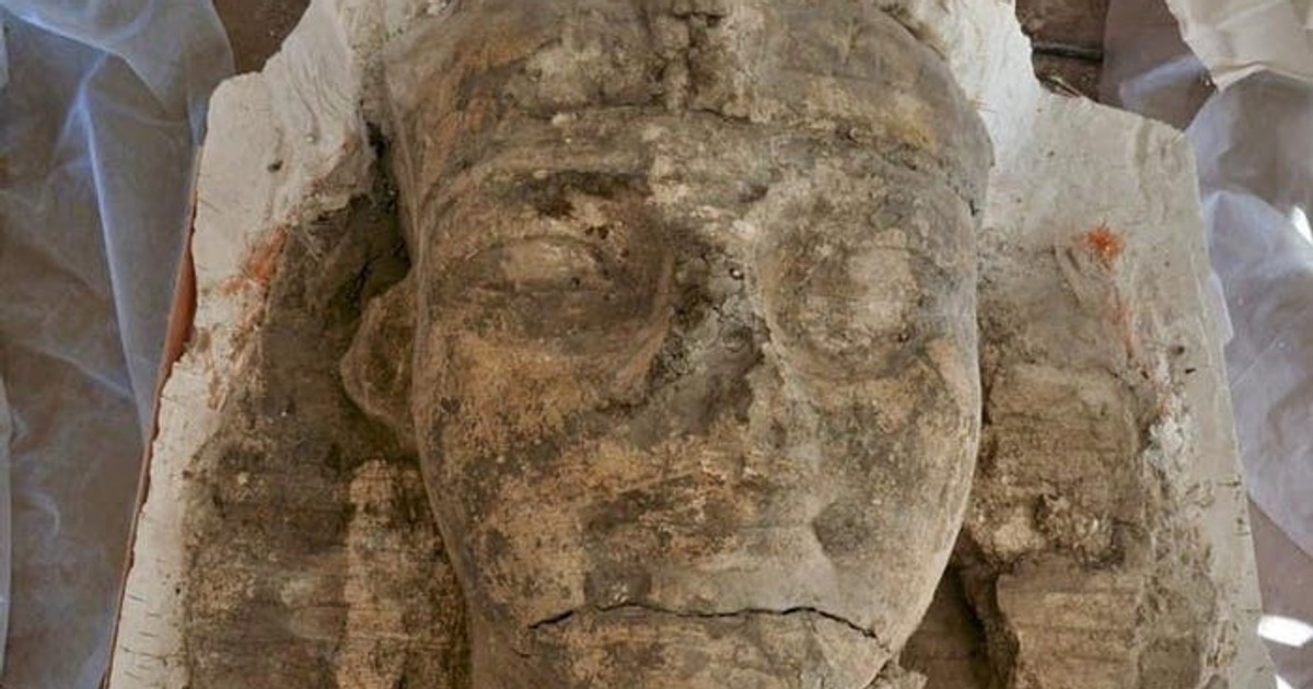 Sfincșii pe jumătate scufundați au fost descoperiți de o expediție arheologică egiptean-germană la locul cunoscut sub numele de „Templul Milioane de Ani”.
