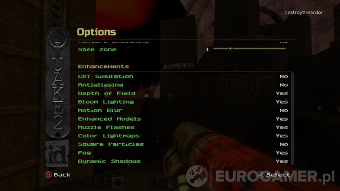 Noua versiune de Quake 2 oferă multe setări & nacute; grafică care poate & aogon. se va schimba radical & cacute; Apariția jocului. Ne putem bucura amândoi & cacute; Si & Yugon. unco & lstrok; jo & sacute; neon˛ Precum și originalul & aogon; legare & aogon; precum și & zdo; Vom crea & aogon; c & ogon; Ne amestecăm și eogon. setări & nacute ;.