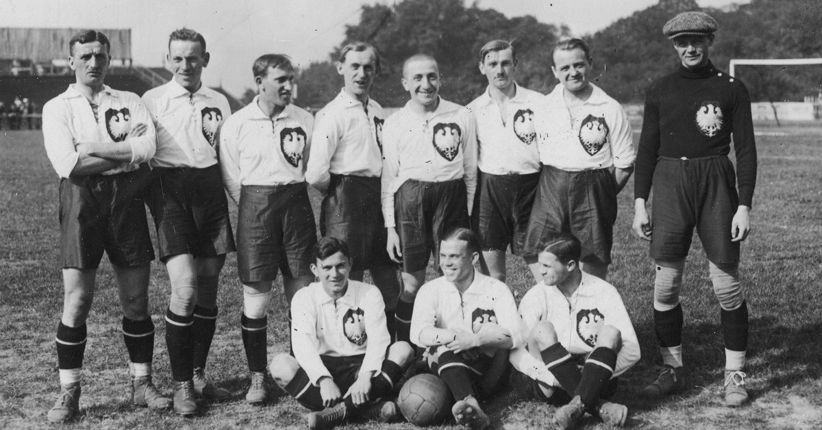 Și în septembrie – așa cum s-a dovedit pentru singura dată în cariera sa – a fost chiar căpitanul echipei naționale a Poloniei. Echipa noastră a jucat în deplasare împotriva României (azi la Cernăuți, Ucraina). Meciul a fost un scandal pentru că mulți dintre reprezentanții noștri nu aveau pașapoarte valabile, așa că pentru a trece granița au prezentat documente ale altor jucători cu domiciliul în țară. Cea mai interesantă poveste se referă la debutul lui Jerzy Polanu, care era rus de naștere și a fugit cu familia în Polonia de la Moscova pentru a scăpa de regimul bolșevic. S-a asimilat polonezilor, dar totul era nou pe vremea aceea și nu avea încă șanse să obțină acte poloneze. Activiștii din fotbal l-au salvat de această problemă încălcând legea. Din perspectiva de astăzi, poate părea o anecdotă, dar e ușor de crezut că avem de-a face cu un scandal major. Un alt lucru este că în acele vremuri – când verificarea identității sportivilor era dificilă pentru că nu erau recunoscuți pe scară largă – jocul pe cărți „stânga” se întâmpla din când în când, chiar și la nivel de națională.