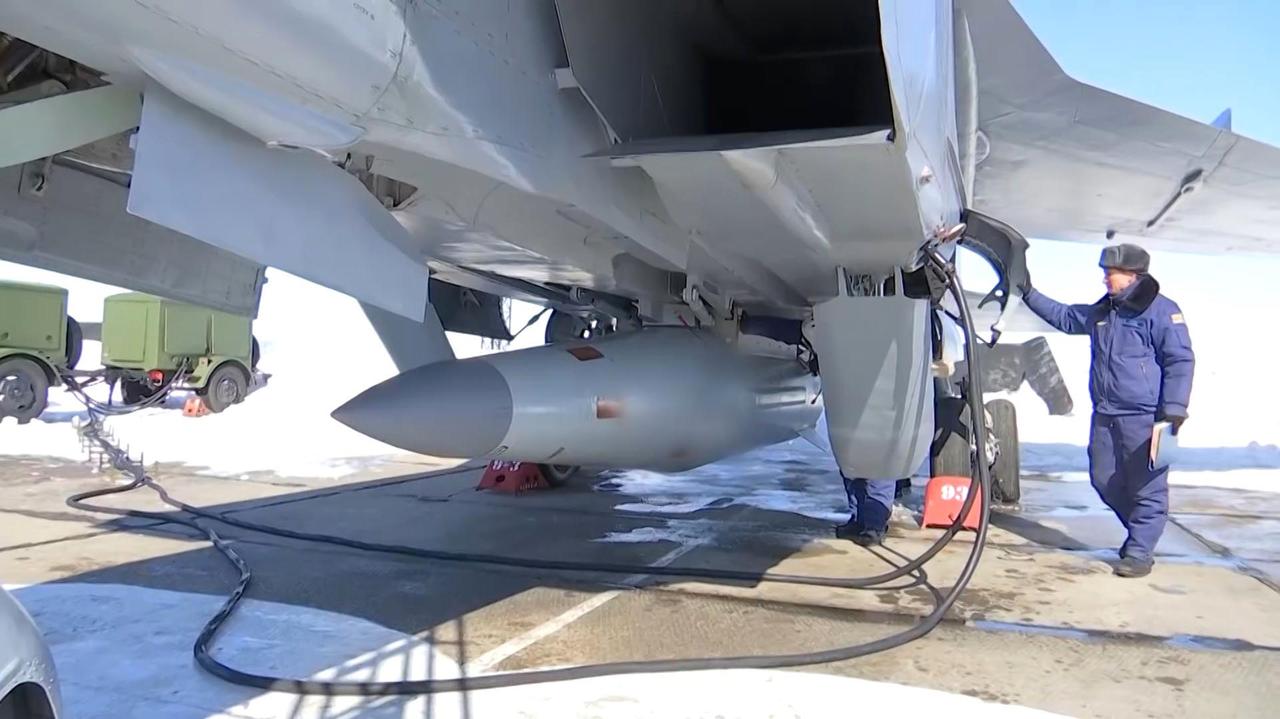Rachetele supersonice Kinzhal, care sunt capabile să transporte focoase nucleare sau convenționale, au o rază de acțiune de 1.500-2.000 de mile marine. km, toată Ucraina. Se mișcă de multe ori mai repede decât viteza sunetului (poate atinge Mach 10, sau mai mult de 12.000 km pe oră). Este considerat dificil de detectat de sistemele de apărare antirachetă.