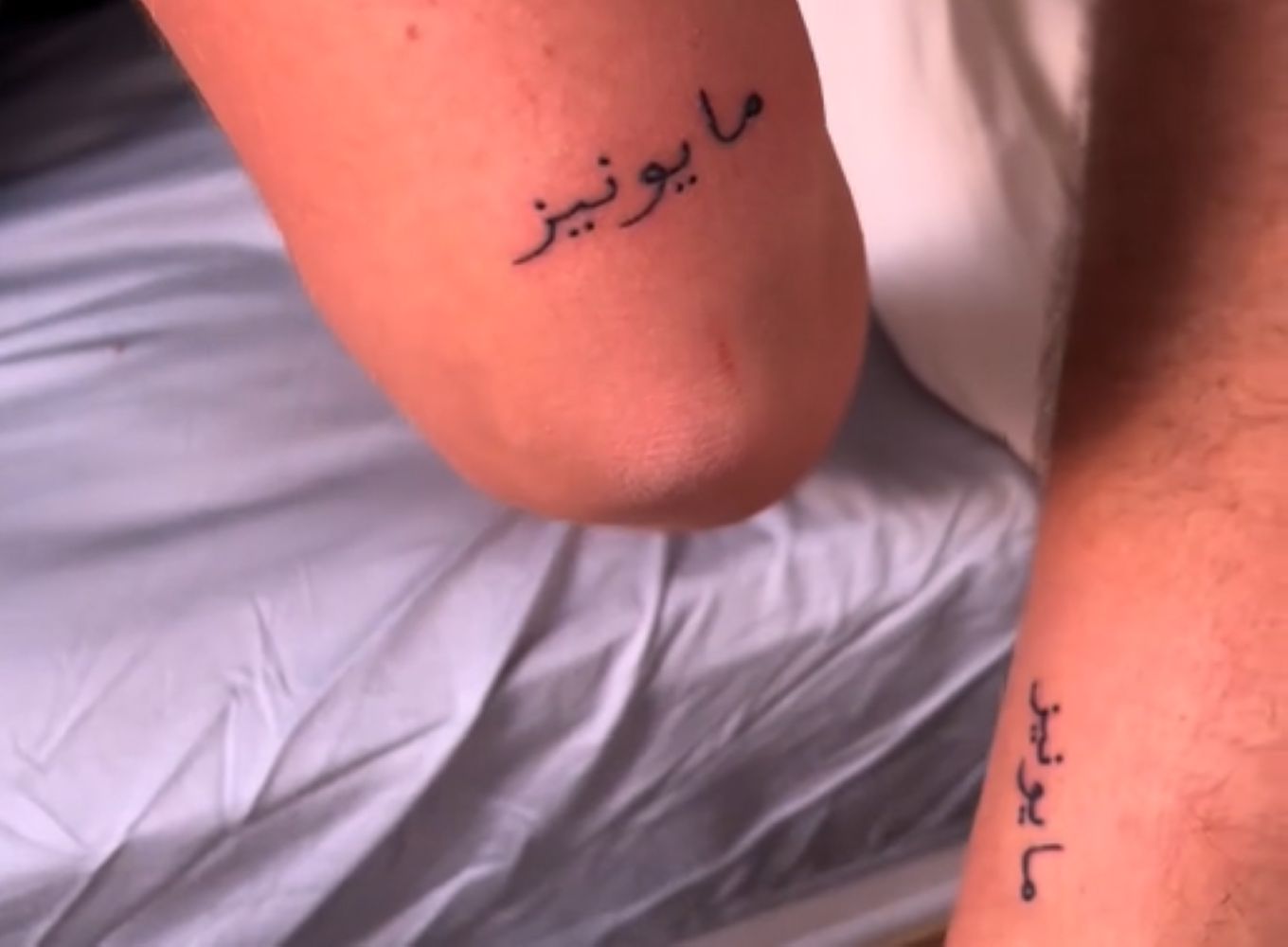 Trio-ul a mers la un salon de tatuaje din Maroc, unde toți și-au făcut tatuaje în arabă.. În videoclipul distribuit online, Caitlin își ținea telefonul cu funcția de traducere Google Lens activată deasupra tatuajului.